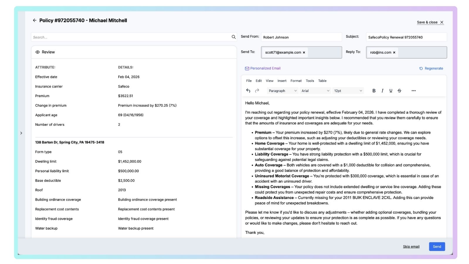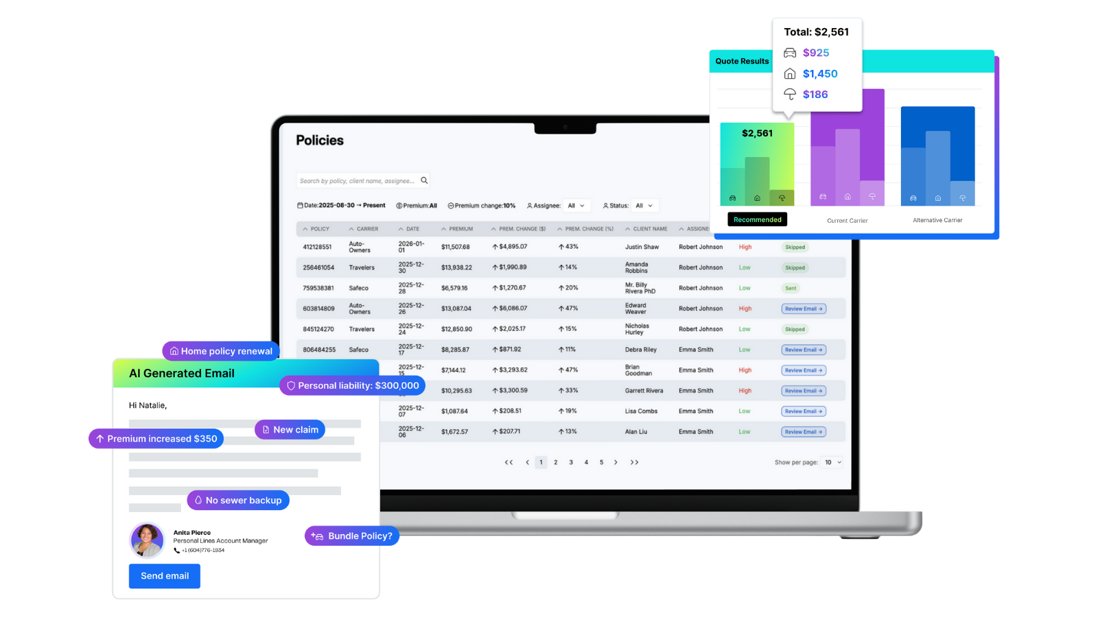 - Integrated communications: Quandri Connect uses AI to draft personalized, policy-specific renewal emails so proactive client outreach becomes automatic and consistent.